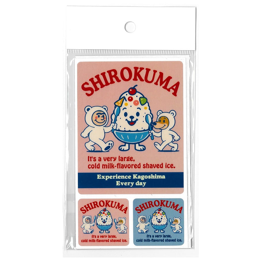 「SHIROKUMA」は、鹿児島の名物である「白熊」を可愛らしく表現したステッカーです。どんな年代の方にも愛されるデザイン感が魅力です。